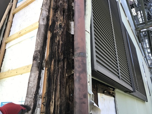 上記画像は数ある柱の中でも位置的に重要である隅柱(すみばしら)で、ここは外壁を剥がす検査(破壊検査)で露見した例です。