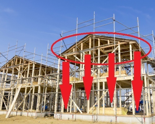 一般的な2階建て木造の重さは約40~50トン程度といわれ非常に重量があるように思いますが、実際に建物を支えているのもこの重さ(鉛直荷重)でもあります。